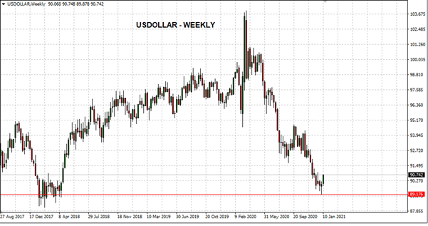 Major Indices took a breather last week, with US equity markets closing down more than 1% after posting record highs the week prior. In economic news, the incoming US administration announced a $1.9 USD trillion fiscal-stimulus plan that aims to counter the effects of COVID-19 and support markets as recent weak economic figures are indicating they are under some stress.